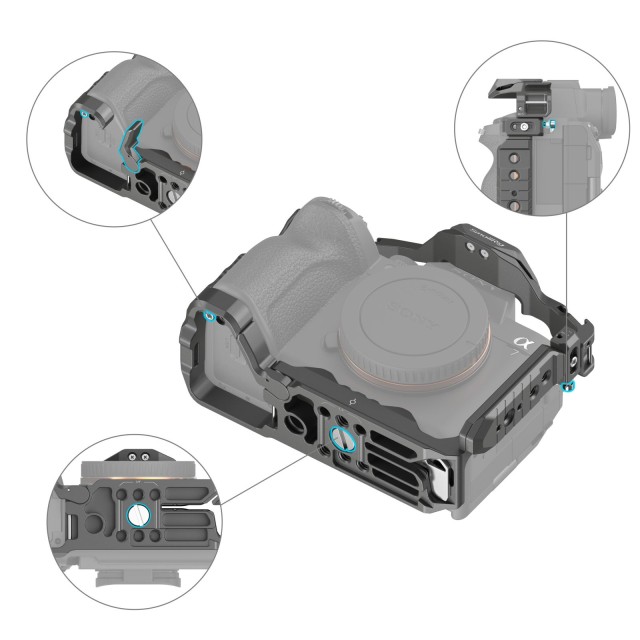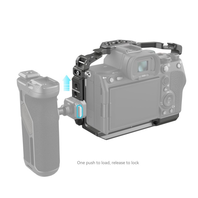 SmallRig HawkLock Quick Release Cage Kit za Sony Alpha 7R V / Alpha 7 IV / Alpha 7S III 4538 je zasnovan tako, da omogoča snemanje pod nizkim kotom in ščiti fotoaparat, hkrati pa ponuja širok nabor nastavkov za dodatno opremo. Vključuje kletko, objemko za kabel HDMI, tirnico NATO in zgornji ročaj. Patentirana samorazvita struktura hitrega sproščanja (imenovana HawkLock) zajema hladne čevlje, tirnico NATO in arca swiss, ki se uporablja z ekološkimi dodatki HawkLock za uresničitev trdnega in brez napačnega položaja, enega pritiska za nalaganje, sprostitve za zaklepanje in izboljšanje učinkovitosti demontaže.