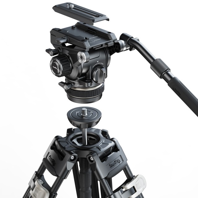 SmallRig Heavy-Duty Carbon Fiber Tripod Kit AD-120 4463 je profesionalni komplet stativa za video, ki olajša snemanje videoposnetkov. Stativ ima nastavljive noge, ki jih je mogoče hitro umakniti in podaljšati s pomočjo preklopnih ključavnic. Delovna višina je od 58 cm (22,9 palca) do 197 cm (77,6 palca), zložena dolžina pa je 99 cm (38,9 palca). Fluidna glava ima nastavljiv 6-stopenjski sistem protiuteži. Ko je višina gravitacijskega središča 55 mm / 2,2", 6-stopenjski sistem protiuteži uravnoteži fotoaparat ali drugo opremo (do 8 kg / 17,6 lb) in natančno nadzoruje nagib fotoaparata. Nastavljiv sistem blaženja brez stopnje omogoča nastavitev vrtenja in nagiba ter zagotavlja gladko premikanje fotoaparata. Fluidna glava 4464 uporablja novo zasnovo plošče za hitro snemanje Touch-and-Go, ki je ni treba prilagajati in je učinkovitejša od običajnih drsnih plošč. Združljiva je s ploščo za hitro sproščanje serije DJI RS in ploščo za hitro sproščanje Manfrotto, kar omogoča prosto preklapljanje med fotografiranjem s stabilizatorjem in fotografiranjem s stativom. Uporabniku prijazen snemljiv teleskopski ročaj omogoča vrtenje in pritrditev na levo in desno stran, zato je primeren za vsak oprijem. Lahke, a trpežne noge stativa iz ogljikovih vlaken imajo zamenljive ravne noge in bodice, razpršilce za tla in srednji nivo ter mehurčkovo niveleto. Paket vključuje tudi prilagojeno torbo za prenašanje za shranjevanje in zaščito izdelka.