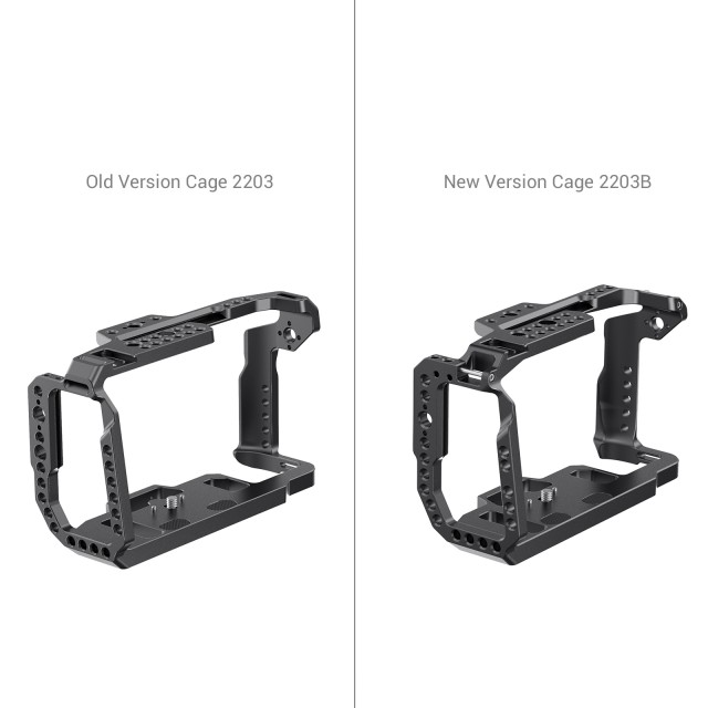 Kletka SmallRig za kamero Blackmagic Design Pocket Cinema Camera 4K in 6k 2203 je kletka, ki se prilega obliki. Na kamero je varno pritrjena z vijaki 1/4'-20 na zgornji in spodnji strani, medtem ko dodatni položajni zatiči in gumijaste blazinice na osnovni plošči preprečujejo nihanje in praske. Na zgornji in levi strani kletke so vgrajene tirnice NATO, na katere lahko pritrdite zgornji ročaj SmallRig NATO 1955 ali leseni stranski ročaj SmallRig NATO 2187 za snemanje iz roke. Za pritrditev dodatne opreme, kot je ročica SmallRig Ballhead Arm 2070, je na voljo več lukenj z navojem 1/4''-20 in 3/8''16 ter luknje ARRI Locator.