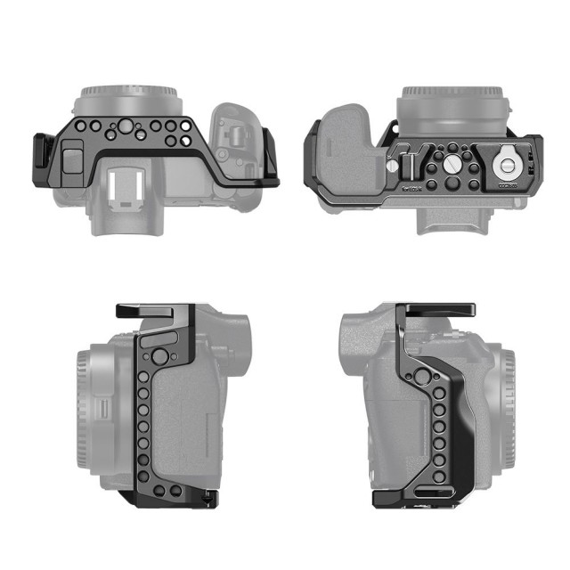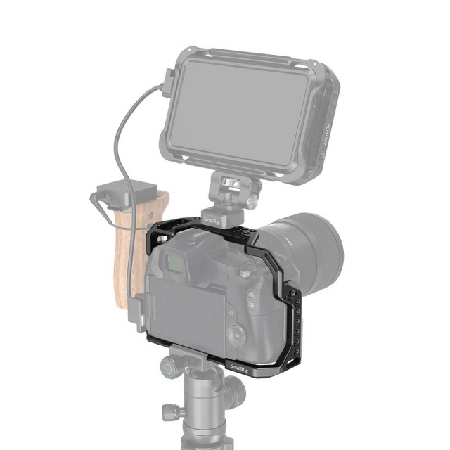 je prilegajoča se kletka, zasnovana tako, da zagotavlja zaščito in oprijemala za dodatno opremo fotoaparata. Kletka se pritrdi na dno fotoaparata z vijakom 1/4"-20 in ima dva zatiča proti prevračanju. Ima več lukenj z navojem 1/4"-20 in 3/8"-16, navoje za dodatke ARRI in hladno podnožje, ki omogoča namestitev dodatkov. Za snemanje iz roke lahko na primer pritrdite zgornji ročaj SmallRig 2165 ali leseni stranski ročaj SmallRig 2093, za pritrditev na monitor pa kroglično glavo SmallRig Magic Arm 2070 ali držalo SmallRig 1842. Deluje s kabelsko objemko SmallRig 1822 za zaščito kabla HDMI in vrat. Če uporabljate adapter za namestitev objektiva Canon EF-EOS R, lahko uporabite stojalo SmallRig BSA2696, ki podpira stojalo in razbremeni pritisk težkega objektiva. Kletka ima vgrajeno tudi ploščico Arca Swiss QR in ploščat izvijač na dnu.