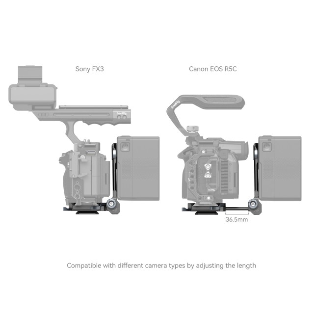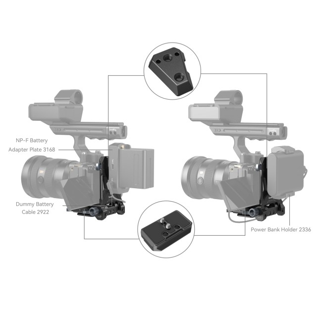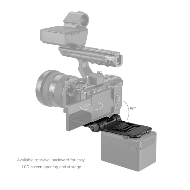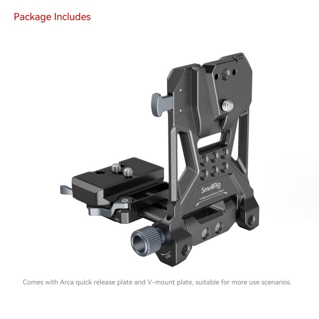 SmallRig Compact V-Mount Battery Mounting System 4064 je kompaktna, lahka, priročna in univerzalna montažna rešitev za baterije V-mount. Komplet je sestavljen iz plošče za pritrditev baterije V-mount, plošče za hitro sprostitev tipa Arca in plošče za pritrditev V-mount. Predvsem osnovno ploščo je mogoče razširiti za namestitev brezzrcalnih/digitalnih zrcalno-refleksnih fotoaparatov različnih velikosti, zato namestitev in nastavitev potekata brez orodja, hitro in brez porabe časa. Zunaj vsake kletke z vgrajeno ploščo tipa Arca lahko neposredno podpira kamero in kardanske stabilizatorje serije DJI RS prek hitre sprostitvene plošče Arca Swiss. Montažna plošča za baterije v obliki črke V, ki ima luknje z navojem 1/4"-20 in montažno ploščo za baterije v obliki črke V, omogoča več rešitev za napajanje s priključitvijo adapterske plošče za baterije NP-F Professional Edition 3168 ali prenosnega držala za powerbank BUB2336. Preklapljanje med fotografiranjem iz roke in s stativa je olajšano tudi s spodnjo ploščo v slogu Arca. Za 90 stopinj vrtljiva ploščica za pritrditev baterije v obliki črke V pušča dovolj prostora za obračanje zaslona, blaženje vrtenja pa preprečuje, da bi se naprava prevrnila. Za večjo kompaktnost in prenosnost jo je mogoče zložiti.
