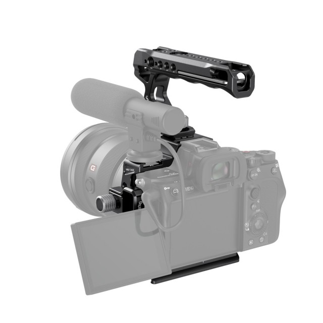 Komplet SmallRig Half Cage Kit za Sony Alpha 7S III 3237 vključuje SmallRig Half Cage 3193, kabelsko objemko HDMI 3000 in nastavljiv zgornji ročaj ARRI 2165. Ročaj razbremeni roke pri snemanju pod nizkimi koti in ima pritrdilne točke za dodatno opremo. Kletka in ročaj sta opremljena z več luknjami z navojem 1/4"-20, na voljo so lokacijske luknje ARRI 3/8"-16 za namestitev stranskega ročaja SmallRig 2093 in nosilca za monitor 2903 ter nastavki za hladno podstavek za namestitev mikrofonov, luči LED in nosilca za monitor 2905.
