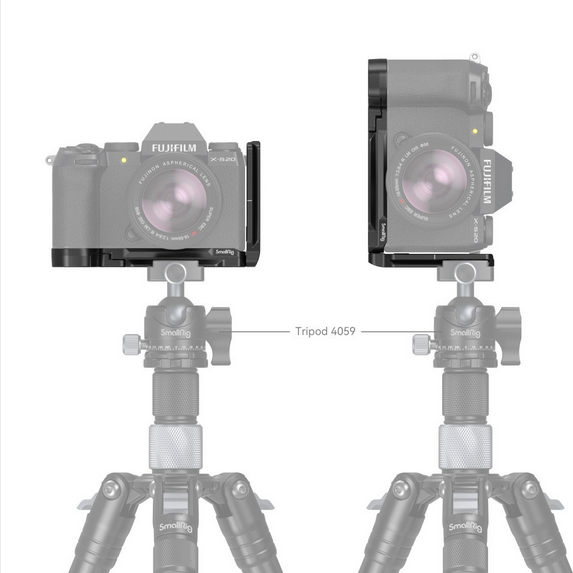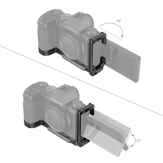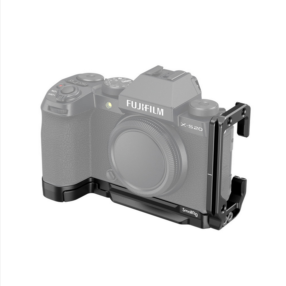 Nosilec SmallRig L za FUJIFILM X-S20 4231 je zasnovan za lažje preklapljanje med vodoravnim in navpičnim fotografiranjem ter za boljši občutek za oprijem. Pritrdilna plošča se zaklene z enim vijakom 1/4"-20 na dnu, ima gumijaste blazinice, ki preprečujejo nastanek prask, in tečajno ročico na vratih baterije, ki se prilega krivini fotoaparata in omogoča udoben oprijem. Izdelek je sestavljen iz spodnje plošče Arca Swiss in stranske plošče. Na spodnji plošči so ploščice Arca Swiss za hitro sproščanje za stative tipa Arca ali gimbale DJI RS 2 / RSC 2 / RS 3 / RS 3 Pro, luknje z navojem 1/4"-20 za podporo stranskemu ročaju 2093 in 3847 pri navpičnem snemanju, tudi ploščica za hitro sproščanje 1280; luknje za trak za ročni trak 3848 in 2456 ter vgrajeni nastavki QD na dnu za zaponko QD za trak. Na stranski plošči so luknje z navojem 1/4"-20 za nastavek Cold Shoe Mount BUC2736 za mikrofon. Stranska plošča podpira kabelsko objemko HDMI 1693 za stabilen prenos podatkov, poleg tega pa jo je mogoče raztegniti za 22 mm, da omogoči namestitev kablov med navpičnim snemanjem. Prav tako se lahko prilagodi naprej in nazaj za 7,8 mm, da omogoči 180-stopinjsko odpiranje in 120-stopinjsko vrtenje preklopnega zaslona LCD. Poleg tega je priložen magnetni imbusni ključ za enostavno razstavljanje in sestavljanje.