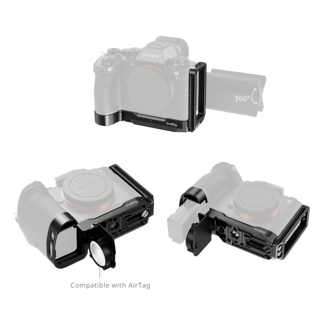 Ploščica SmallRig L-Shape Mount Plate za Sony Alpha 1 II / Alpha 9 III 5188 omogoča hiter prehod med ležečo in pokončno orientacijo. Zasnovana je tako, da se prilagaja oblinam fotoaparata, in izboljša oprijem z dodatno oporo za mali prst. Nosilec se z vijakom 1/4"-20 varno pritrdi na spodnji del fotoaparata in ima silikonske blazinice, ki preprečujejo nastanek prask. Združljiv je tudi s sledilniki AirTag, ki vam pomagajo pri sledenju fotoaparatom in drugim napravam.
