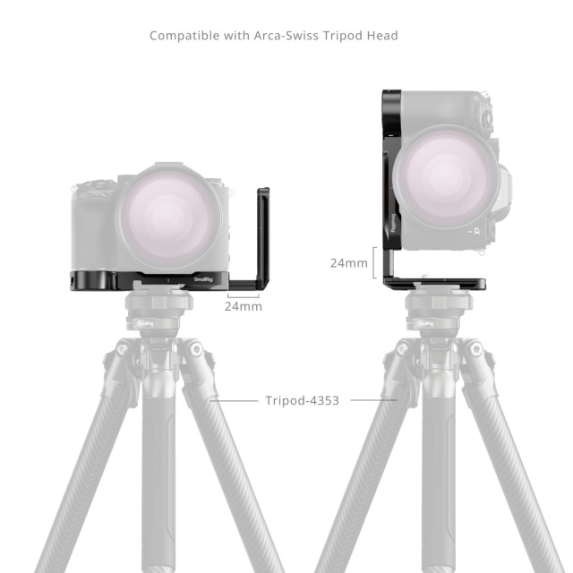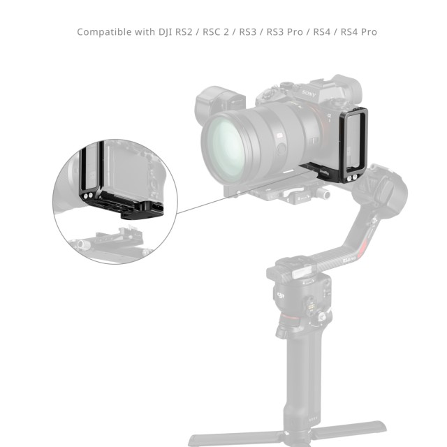 Spodnja plošča za hitro sproščanje Arca-Swiss je združljiva s stativi tipa Arca in gimbali DJI RS 2 / RSC 2 / RS 3 / RS 3 Pro / RS 4 / RS 4 Pro, kar omogoča nemoten prehod med snemanjem iz roke, s stabilizatorjem in stativom. Na dnu je tudi vtičnica QD za pritrditev naramnic (ID PSC2428).