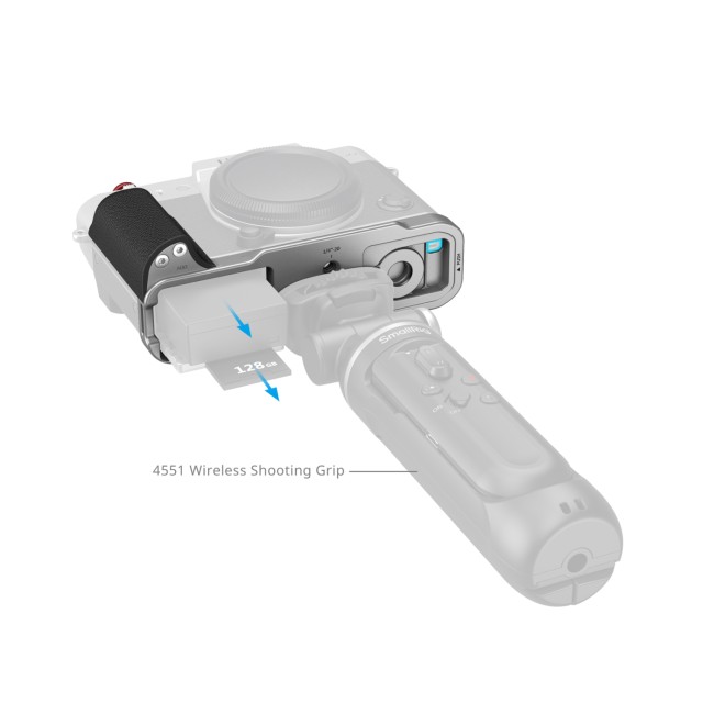L-oblikovan ročaj omogoča popoln dostop do vseh vmesnikov kamere, vključno z baterijskim predalom, obročem za ostrenje, režo za pomnilniško kartico in zvočniki. Ta enota vključuje tudi ploščati ključ za enostavno sestavljanje in razstavljanje, skupaj s pokrovčkom sprožilca za izboljšanje taktilne povratne informacije med fotografiranjem.