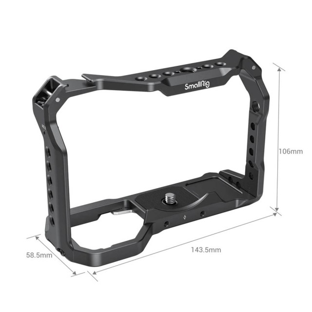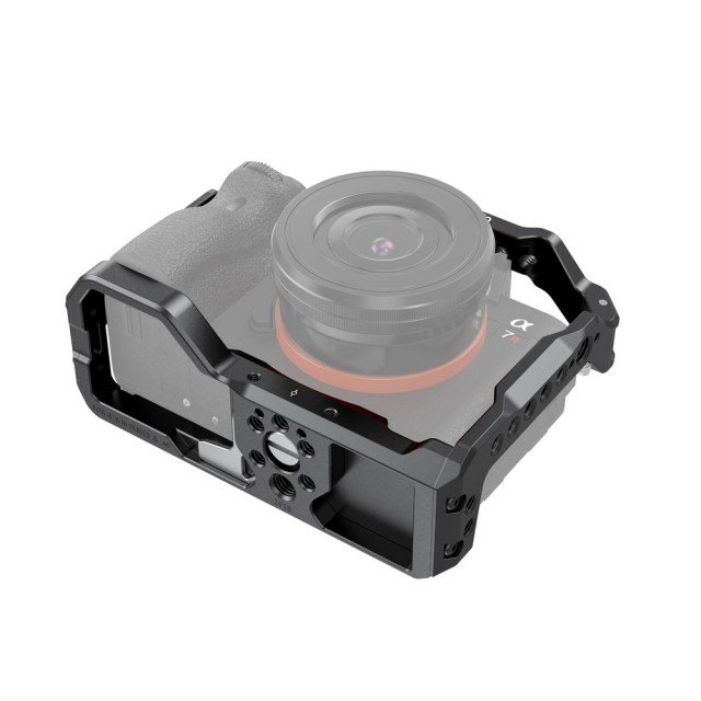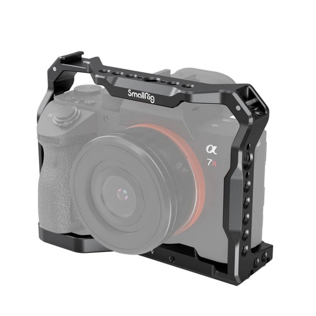 Kletka SmallRig Light Cage za Sony A7 III A7R III A9 2918 ohranja dostop do upravljalnih elementov fotoaparata in ponuja različne možnosti namestitve. Poleg ene hladne noge in več lukenj z navojem 1/4"-20 in 3/8"-16 ima ta aluminijasta kletka več ročajev v slogu ARRI, ki preprečujejo zvijanje dodatne opreme, ko je nameščena na kletko. Kletka ima tudi zasnovo proti vrtenju z vijakom M2,5, ki je poleg vijaka 1/4"-20 za pritrditev fotoaparata pritrjen na luknjo za trak, tako da se fotoaparat v kletki ne more premikati.
