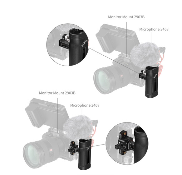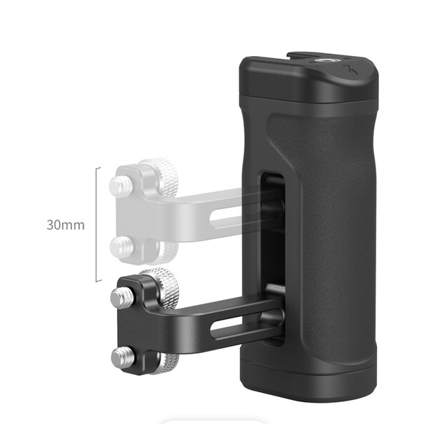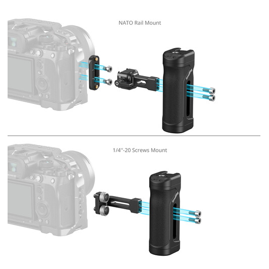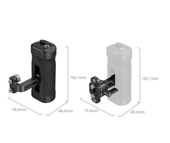Izboljšajte nadzor nad opremo s kompletom SmallRig Lightweight Mini Side Handle Kit, 6-unčnim aluminijastim ročajem s protizdrsno teksturo, nosilnostjo 22 lb, nastavitvijo višine 1,2", zgornjim hladnim čevljem in 1/4"-20 protivrtljivim navojem ter dvojnimi možnostmi pritrditve prek priloženih dvojnih vijakov 1/4"-20 (razmik 0,7") ali NATO sponke in vodila za pritrditev na levi/desni strani na kletke ali opremo.