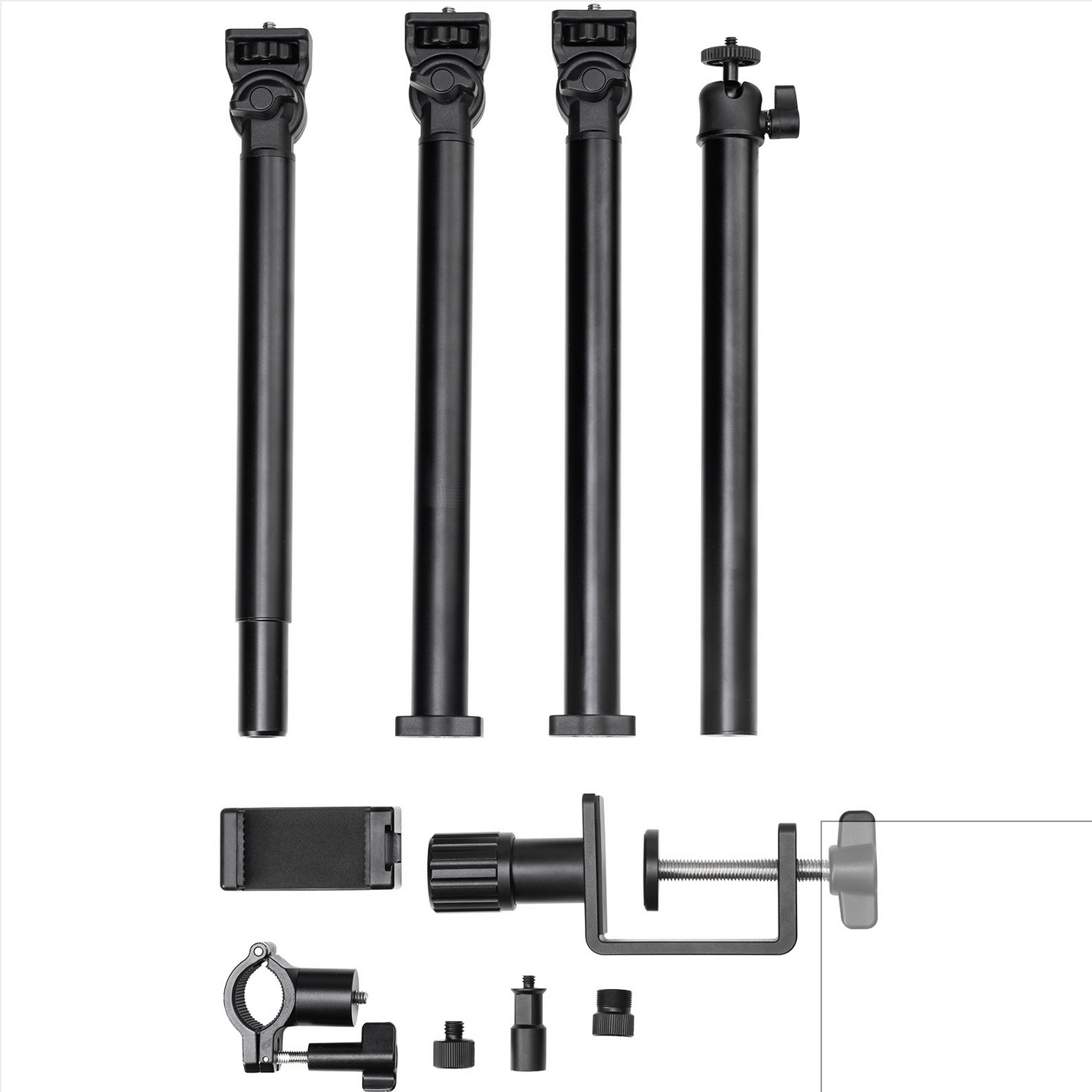 Ta prilagodljiv nosilec omogoča snemanje pod več koti s podporo za 360-stopinjsko vrtenje ter prožno in prilagodljivo tridelno členasto roko za priročno mobilnost. Z robustno nosilnostjo, združljivostjo z različnimi dodatki in vrsto adapterjev je idealno orodje za vsestranske in učinkovite nastavitve fotografiranja.
