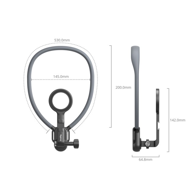 Nosilec za vratSmallRig 5127, združljiv s tehnologijo MagSafe, je strokovno zasnovan za snemanje POV z mobilnimi telefoni. Omogoča hitro nošenje z enim dotikom in gumbom za odklepanje, kar omogoča lažjo uporabo. Obesek za vrat meri v skupno dolžino 600 mm (23,6 palca) in se ponaša z racionalizirano zasnovo za udobno prileganje.