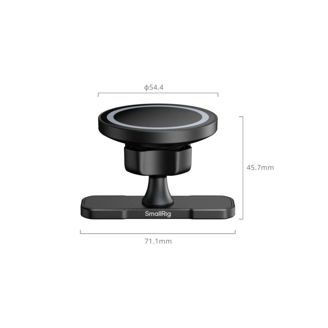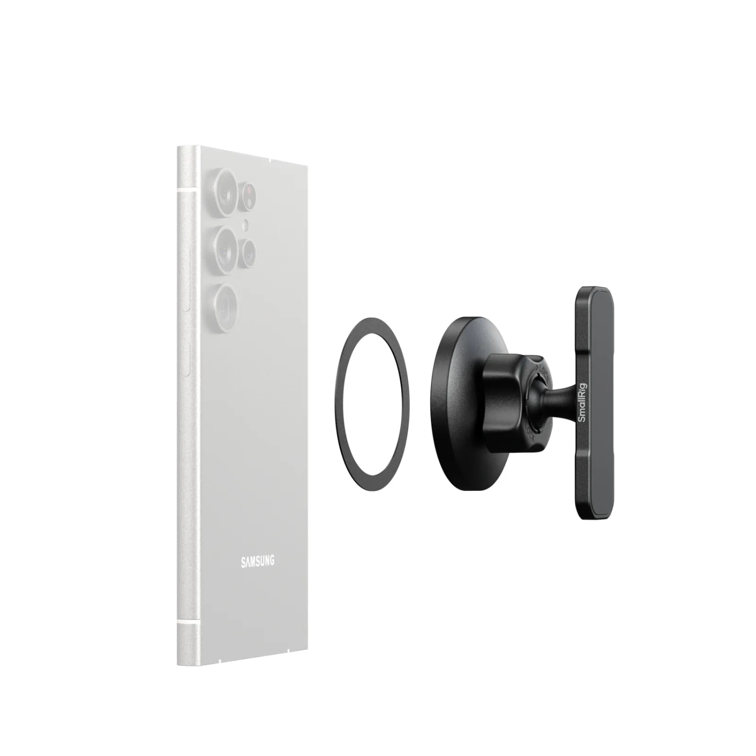 Dvostranski pritrdilni nosilec SmallRig je zasnovan za snemanje z mobilnimi telefoni v zaprtih prostorih. Njegova dvostranska magnetna zasnova je primerna za ravne železne površine, kot so telovadni stroji in železno pohištvo. Podstavek ima vgrajenih šest magnetov N54, ki zagotavljajo varno pritrditev na te površine. Stranski nosilec za telefon vsebuje magnetni obroč z 20 magneti N52, ki zagotavlja popolno združljivost s telefoni iPhone serije 12-16 prek sistema MagSafe. Za naprave z operacijskim sistemom Android je priložen dodaten adapter s kovinskim obročem, zato je naprava primerna za širok nabor pametnih telefonov. 360-stopinjsko nastavljiva krogelna glava omogoča hitro prilagajanje kota za optimalno perspektivo fotografiranja.