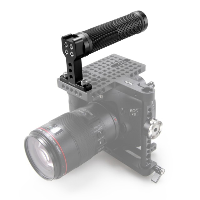 Zgornji ročaj SmallRig (črni gumijasti obroč) 1447 je neposredno pritrjen z 2 vijakoma 1/4" (nastavljiva razdalja med dvema vijakoma 1/4" je 30 mm - 40 mm).