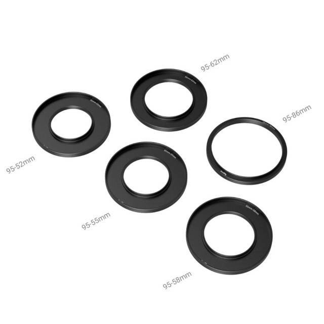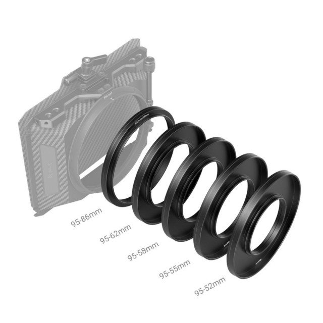 Set adapterskih obročkov SmallRig (Φ52/Φ55/Φ58/Φ62/Φ86-Φ95) 3383 je dodatna oprema, ki deluje z mini matirko 3196. Njegove adapterske obroče lahko hitro pritrdite na standardne objektive Φ52/Φ55/Φ58/Φ62/Φ86 in služijo kot trdna opora za mat box. Adapterski obročki prilagodijo zasnovo pred izpadom, preprečujejo nenamerno odlepitev ter zagotavljajo varno in zanesljivo fotografiranje pri delu z Mini Matte Boxom 3196. Združljivi so s široko paleto okroglih filtrov, vključno s filtri CPL in filtri ND do Φ92,5 mm, in puščajo dovolj prostora za hitro odstranjevanje in prilagajanje obročkov za filtre CPL. Komplet je v celoti združljiv z različnimi objektivi in uporabnikom zagotavlja odlično izkušnjo fotografiranja v smislu hitre namestitve in preklopa prizora.