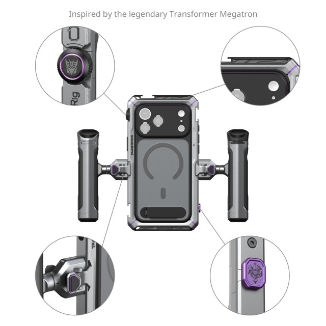 SmallRig Dual Handheld Video Kit za iPhone 17 Pro (Megatron Edition) 5585 je profesionalna rešitev za snemanje z mobilnim telefonom, zasnovana posebej za iPhone 17 Pro, ki omogoča profesionalno snemanje videov, neposredno predvajanje in produkcijo kratkih filmov.