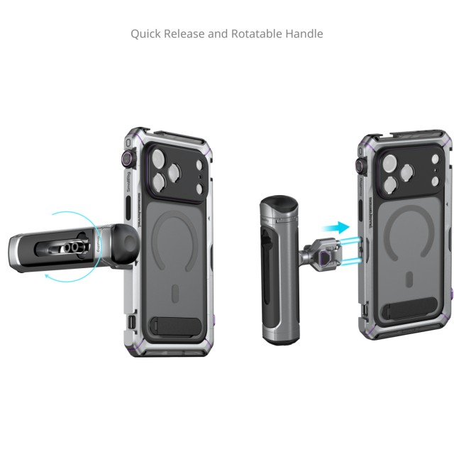 Telefon se lahko pritrdi na okvir z ovitkom. Okvir je opremljen z več 1/4"-20 navojnimi luknjami in hladnimi nosilci, ki jih je mogočerazširiti z dodatki, kot so ročaji, stativi, mikrofoni in luči. Klasični vmesniki za hitro sprostitev omogočajo učinkovito ročno ali stativno namestitev.