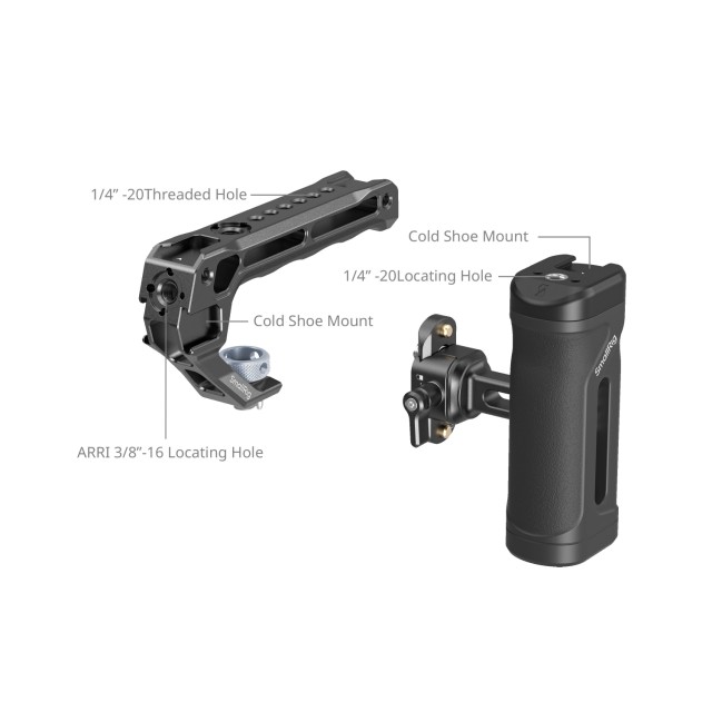 SmallRig mini komplet stranskega in zgornjega ročaja 5949 je zasnovan za udobno snemanje iz roke. Komplet vključuje stranski ročaj NATO, zgornji ročaj ARRI in tirnico NATO, ki zagotavljajo brezhibno združljivost z različnimi ohišji za kamere. Ti ročaji ponujajo vsestranske možnosti razširitve prek več vmesnikov, vključno z 1/4"-20 pritrdilnimi luknjami za pritrditev dodatkov, kot so daljinski upravljalniki (ID 3902) ali magic arms (ID 3873), kot tudi hladne čevlje za pritrditev monitorjev (ID 2905B), mikrofonov (ID 3487) ali video luči (ID 3286B).