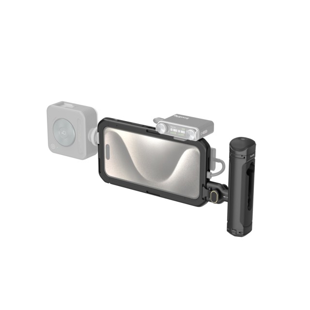 SmallRig Mobile Video Kit (en ročni) za iPhone 15 Pro Max 4393B vključuje en brezžični krmilni ročaj, ki omogoča snemanje z enim klikom in zagotavlja stabilno snemanje videoposnetkov in vloganje. Kletka ima več lukenj z navojem 1/4"-20 in hladno podnožje za pritrditev ročaja, stativa, mikrofona, video luči LED itd. Vse imajo novo zasnovo SmallRig Quick Release za enostaven in takojšen preklop med snemanjem v vodoravni in navpični orientaciji.