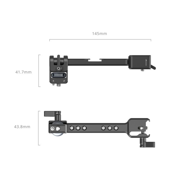 Nosilec za monitor SmallRig za serijo DJI RS 5337 je zasnovan za namestitev monitorjev in fotografske dodatne opreme na stranski del stabilizatorjev. Ta nosilec ima objemko NATO in je združljiv s stabilizatorji DJI serije RS, ki so opremljeni z vodilom NATO. Z nosilnostjo do 1,5 kg je primeren za približno 5-palčne monitorje in omogoča brezstopenjsko vrtenje za 360° z varnim zaklepnim gumbom. Poleg tega ima nosilec šest lukenj z navojem 1/4"-20 in en nastavek za hladno čevelj za pritrditev mikrofonov, magičnih rok in druge dodatne opreme. Vključeno je tudi posebno vodilo NATO, ki ščiti vrata naprave pred obrabo.