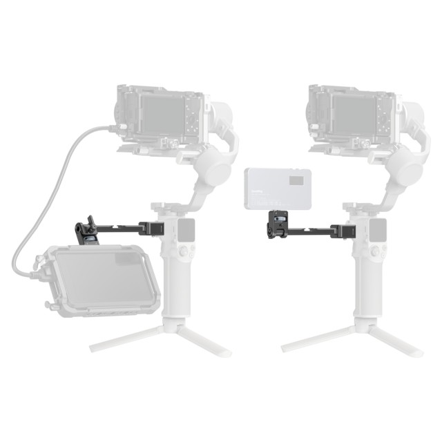 Držalo SmallRig Monitor Mount za serijo DJI RS 5337 je zasnovano za namestitev monitorjev in fotografskih pripomočkov na stranski del stabilizatorjev. Ta nosilec ima objemko NATO in je združljiv s stabilizatorji DJI serije RS, ki so opremljeni z vodilom NATO. Z nosilnostjo do 1,5 kg je primeren za približno 5-palčne monitorje in omogoča brezstopenjsko vrtenje za 360° z varnim zaklepnim gumbom. Poleg tega ima nosilec šest lukenj z navojem 1/4"-20 in en nastavek za hladno čevelj za pritrditev mikrofonov, magičnih rok in druge dodatne opreme. Vključeno je tudi posebno vodilo NATO, ki ščiti vrata naprave pred obrabo.