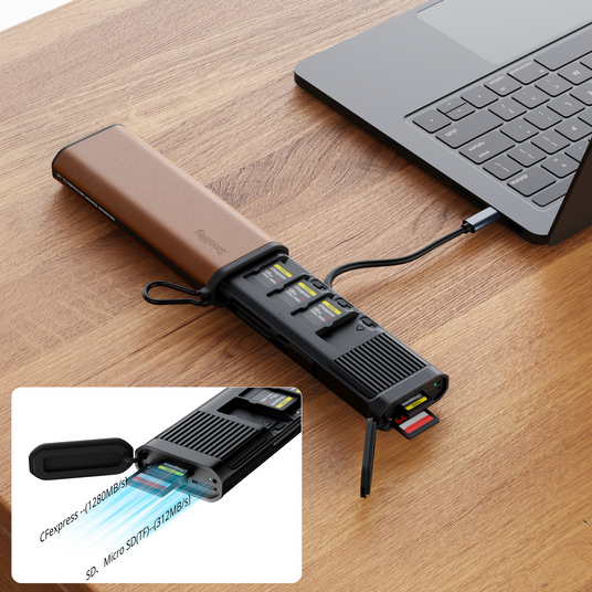 SmallRig 5361 je kompaktna, vsestranska rešitev za profesionalne fotografe in videografe, ki uporabljajo kamere Sony s karticami CFexpress Type A. Ta večfunkcionalna naprava združuje bliskovito hiter čitalnik kartic USB 3.2 Gen 2 z inteligentnim vgrajenim pomnilnikom in inovativnimi funkcijami sledenja. Hkrati prenašajte podatke s kartic CFexpress Type A/B, SD in Micro SD s hitrostjo do 10 Gbps (1250 MB/s) – 1 GB datoteko prenesete v samo 2 sekundah. Aluminijasti hladilnik in aktivni sistem hlajenja preprečujeta pregrevanje med daljšimi prenosi. Posebni vhod za napajanje zagotavlja stabilno, neprekinjeno delovanje tudi med intenzivnimi delovnimi tokovi. Vgrajen reža za AirTag se brezhibno integrira z omrežjem Apple Find My, kar vam omogoča, da svoje dragocene kartice poiščete kjerkoli. Notranji, organizirani reži varno držijo do 4 kartice SD, 2 kartice Micro SD in 4 kartice CFexpress tipa A (ali 3 kartice CFexpress tipa B), s pametnimi stikali za stanje, ki omogočajo takojšen pregled, katere reže so polne ali prazne. Opomba: CFexpress Type A je združljiv samo z modeli Sony; za Canon, Nikon in Panasonic izberite različice CFexpress Type B.