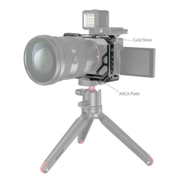 S tem kompletom za namizno kamero Vlog iz SmallRiga dodajte dodatno opremo in namizno podporo kameri Sony a7C. Komplet vključuje prilegajočo se kletko za kamero Sony a7C in namizni mini stativ s kroglično glavo.