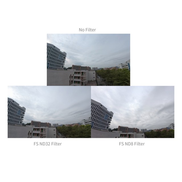 Komplet vključuje štiri osnovne filtre za različne pogoje fotografiranja: filter FS ND8 za svetlo dnevno svetlobo za doseganje uravnotežene osvetlitve; filter FS ND16 za zmerno osvetlitev, ki pomaga ohraniti podrobnosti osvetlitve in senc; filter FS ND32 za močne svetlobne pogoje ali kreativne dolge osvetlitve, kot so svetlobne sledi in učinki zameglitve gibanja; in filter CPL, ki učinkovito odpravlja neželene odboje z nekovinskih površin, kot sta voda in steklo, ter izboljšuje vidljivost pod vodo in skozi okno.