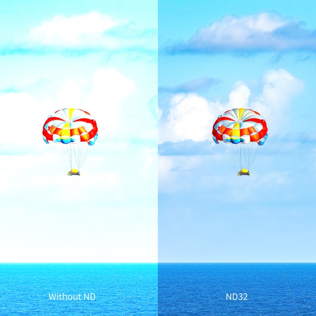 Filter ND32 je primeren za močne svetlobne pogoje ali kreativne dolge osvetlitve, kot so svetlobne sledi in učinki zamegljenosti zaradi gibanja. Ta filter, izdelan iz visokokakovostnega stekla Rainbow z visoko vsebnostjo aluminijevega oksida, ponuja vrhunsko trajnost z odlično odpornostjo proti udarcem in obrabi. Material zagotavlja močno kemično stabilnost za zanesljivo delovanje v različnih okoljih, hkrati pa učinkovito filtrira razpršeno svetlobo, ki lahko poslabša kakovost slike.