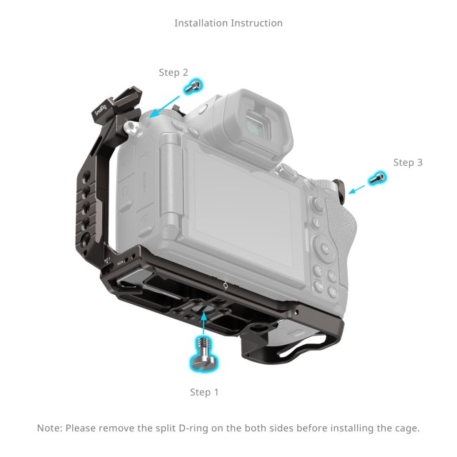 Opomba : Pred namestitvijo te kletke odstranite D-obročke na straneh fotoaparata.