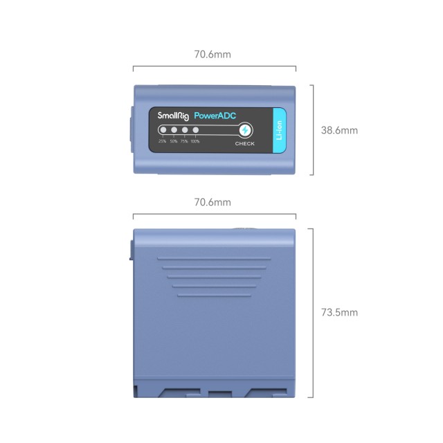 SmallRig NP-F970 USB-C akumulatorska baterija za fotoaparat 4267 ima vhodna/izhodna vrata USB-C za polnjenje prek prenosnega polnilnika, traku, avtomobilskega polnilnika ali namenskega polnilnika in izhodna vrata USB-A, s katerimi se spremeni v banko energije, ki lahko napaja pametni telefon, iPad in druge naprave. Vrata USB-C podpirajo protokol PD 3.0, zato se baterija napolni v samo 6 urah. velika zmogljivost 10500 mAh zagotavlja, da oprema deluje dlje časa; indikatorji pomagajo preveriti stanje baterije. Ta izdelek je zelo združljiv in vsestranski, saj podpira tudi naprave, kot so fotoaparat, video lučka LED, monitor, drsnik itd. Ima ognjevarno, trpežno lupino iz ABS in osebnega računalnika, ki je matirana, da je nežna na dotik.