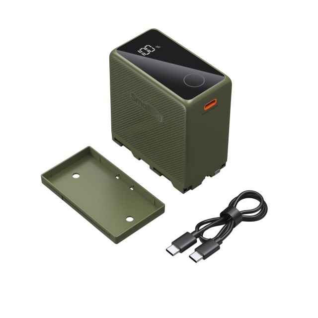Baterija tipa NP-F970 z zmogljivostjo 10500 mAh/76,65wh za daljšo uporabo, povezljivost USB-C in USB-A za vsestransko polnjenje, podpora hitremu polnjenju USB-C PD 36W za hitro 3,5-urno polno polnjenje ter gumbi na dotik in zaslon za enostavno spremljanje stanja baterije. Na voljo od 21. 05. 2024.