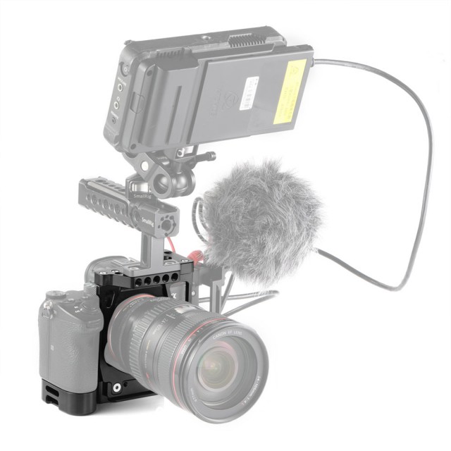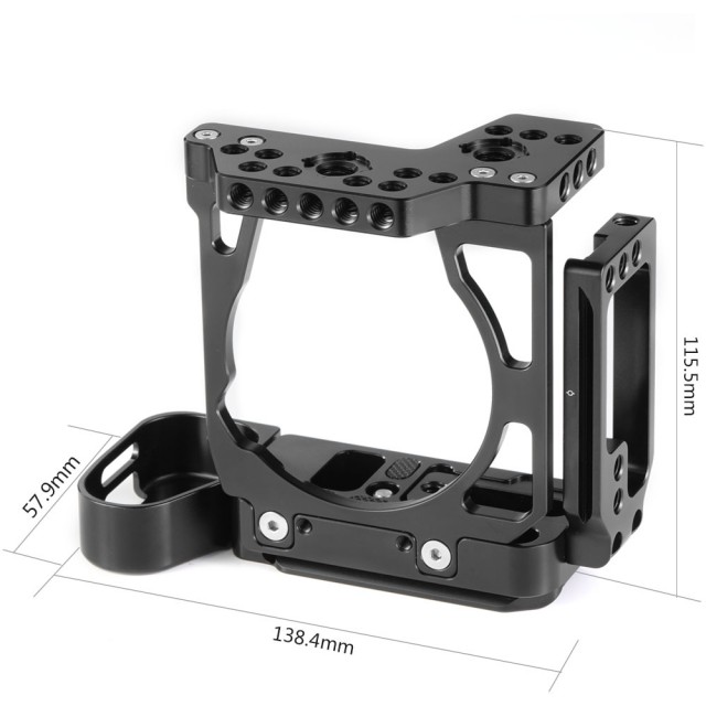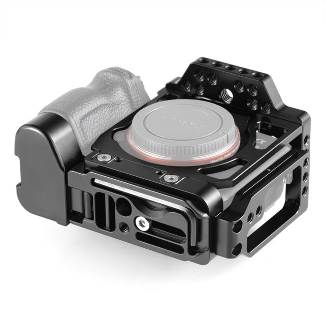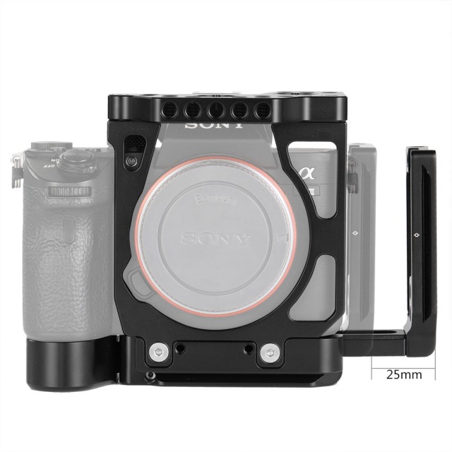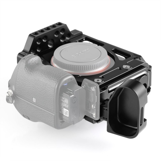 Kletka SmallRig Half Cage with Arca L-Bracket za Sony A7III A7RIII 2236 (CCS2236) je inovativen izdelek, ki združuje lastnosti kletke in nosilca L-Bracket ter tako izpolnjuje potrebe hibridnih fotografov. Stranska in osnovna plošča sta po standardu Arca-Swiss, kar omogoča hitro preklapljanje med vodoravno in navpično orientacijo fotografiranja. Osnovna plošča sega 20 mm v višino in se popolnoma prilega ohišju fotoaparata, kar zagotavlja udoben oprijem pri fotografiranju iz roke. Okrog pokrova za baterijo ima gumb za hitro sprostitev, tako da stikalo za baterijo ni ovirano. Stransko ploščo lahko podaljšate v levo za 25 mm, če potrebujete več prostora za pritrditev ali sprostitev kabla. Če želite zaščititi kabel HDMI in vrata, pritrdite sponko za kabel HDMI SmallRig 2259. Na vrhu je več lukenj 1/4''-20 in 3/8''-16 ter luknje za pozicioniranje Arri, tako da lahko za snemanje videoposnetkov pritrdite zgornji ročaj SmallRig 2165 in kroglično glavo SmallRig Magic Arm 2115.