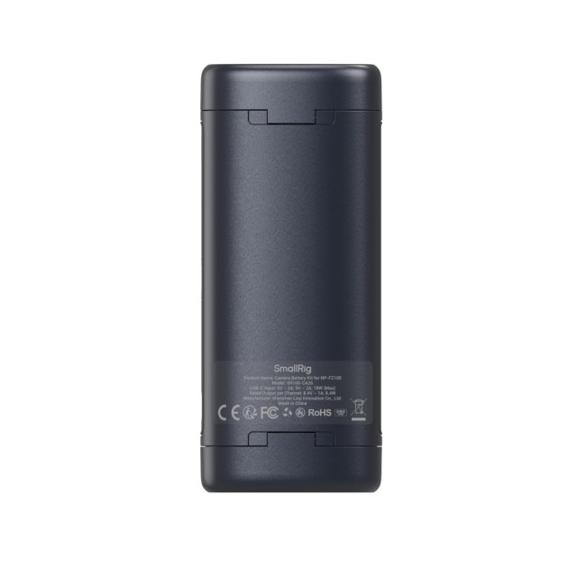 Naprava je opremljena z vtičnico USB-C za dovod napajanja, ki omogoča priključitev na powerbank, stenske adapterje, avtomobilske polnilnike in druge vire napajanja USB-C. Njena združljivost ne zajema le različnih baterij SmallRig NP-FZ100, ampak zagotavlja tudi nemoteno delovanje z originalnimi baterijami in polnilniki Sony NP-FZ100. V kompletu je vključen visokokakovosten 60 W USB-C do USB-C polnilni kabel dolžine enega metra, ki omogoča prilagodljivo polnjenje.