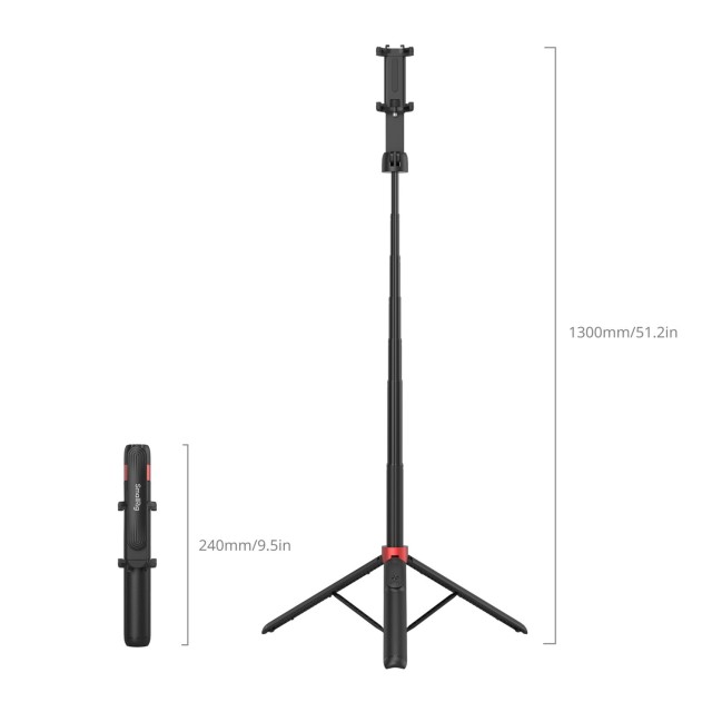SmallRig Portable Selfie Stick Tripod ST-25 Black 4729 ima vsestransko zasnovo 2 v 1, ki združuje funkcijo palice za selfije in stativa z nastavljivo dolžino od 370 mm do 1300 mm. Zložljiva objemka za telefon omogoča namestitev telefonov iPhone in Android ter tako zagotavlja široko združljivost. Z vgrajenim hladnim podstavkom in vijakom z navojem 1/4"-20 na objemki za telefon omogoča enostavno razširitev za priključitev dodatne opreme, kot so mikrofoni in osvetlitev, za boljše možnosti fotografiranja. Poleg tega je izdelku priložen polnilni daljinski upravljalnik Bluetooth, ki zagotavlja stabilno brezžično povezavo z učinkovitim dosegom do 10 metrov, kar uporabnikom zagotavlja večjo svobodo gibanja med snemanjem. Nosilec telefona omogoča 360-stopinjsko vrtenje, medtem ko podporna roka omogoča 180-stopinjsko nastavitev kota, da se prilagodi širokemu razponu kotov snemanja. Podstavek stativa ima tudi gumb z enim klikom za hitro in enostavno nastavitev. Priročno se zloži na kompaktno velikost le 60,0 x 30,0 x 240,0 mm, zato je idealen za potovanja ali pustolovščine na prostem.