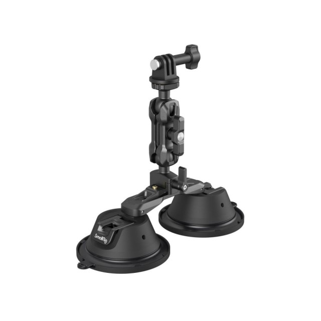 Prenosni nosilec za kamero SmallRig z dvojnim priseskom SC-2K 3566 je lahka rešitev za fotografiranje z akcijsko kamero in mobilnim telefonom v avtomobilu. Modularna zasnova z dvema priseskoma, univerzalno čarobno roko in nastavkom za akcijsko kamero podpira večino lahkih fotoaparatov (npr. Sony ZV-1, serija Canon G7X itd.), akcijskih kamer in mobilnih telefonov na trgu. Držalo za kamero z dvema priseskoma je zasnovano za hitro odstranitev s pritiskom na gumb; Poleg tega ekskluzivna patentirana dvoplastna zasnova priseskov omogoča varno, dolgotrajno in stabilno podporo pri snemanju; Na mestu, kjer sta priseska pritrjena drug na drugega, je prostor nastavljiv pod kotom 20°, kar omogoča pritrditev na ukrivljene površine. Univerzalna čarobna roka se na enem koncu pritrdi na obe priseski s tirnico NATO in hitro pritrdi na druge pripomočke na tirnici NATO, z vijakom 1/4"-20 na drugem koncu pa lahko pritrdite fotoaparate, mobilne telefone, akcijske kamere in druge naprave. Priključek za akcijsko kamero vključuje univerzalni nosilec GoPro in zaklepni vijak, ki podpira čarobno roko za akcijske kamere. Poleg tega je priložen poseben pokrov za prah s priseskom, ki preprečuje usedanje prahu in podaljšuje njegovo življenjsko dobo.