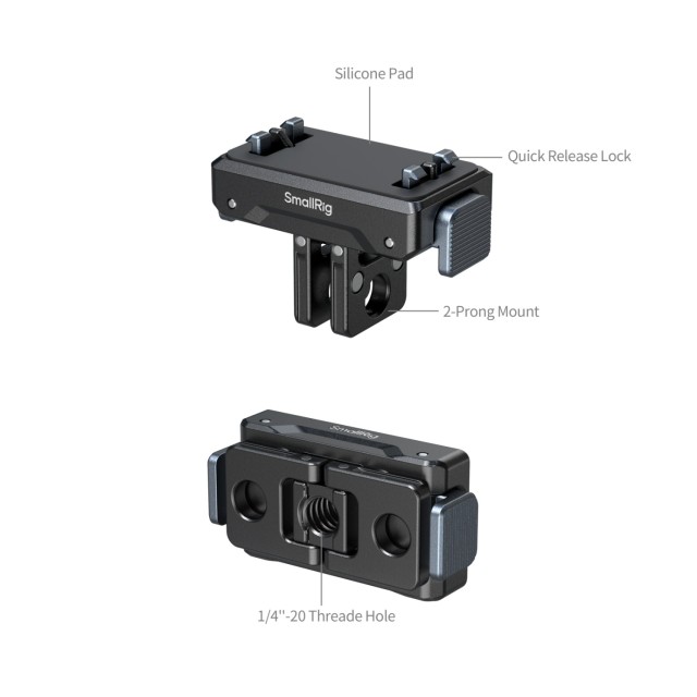 Osnova ima 2-zobno pritrditev in eno 1/4"-20 navojno pritrditev, kar zagotavlja združljivost z različnimi dodatki SmallRig, vključno s pritrditvami s priseski (ID 4235), sponkami v obliki rakovice (ID 4102B), palicami za selfije (ID 5403) in pritrditvami za vrat (ID 5126).