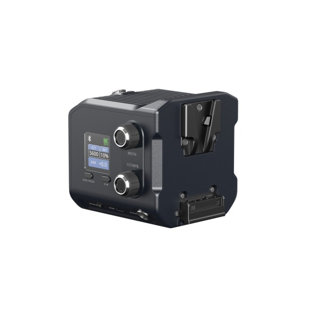 Naprava ponujavsestranske možnosti napajanja - tako brezžično kot žično - kar omogoča neprekinjeno fotografiranje. Polni se lahko prek napajalnika za enosmerni tok z vhodno močjo do 110 W ali prek vrat USB-C z vhodno močjo do 110 W za polnjenje z dodatki, kot so napajalno držalo SmallRig 73Wh, napajalne banke PD, polnilniki PD itd. Na svetilko lahko priključite dve bateriji NP-F970. Poleg tega svetilka vključuje podstavek V-lock, ki je združljiv s standardnimi baterijami V-mount.