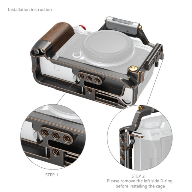 Kletka SmallRig "Retro" za fotoaparat FUJIFILM X-M5 4892 združuje starinsko estetiko s sodobno funkcionalnostjo ter zagotavlja zanesljivo zaščito in vsestranske možnosti dodatne opreme. Zaradi ohišja iz aluminijeve zlitine, lesenega ročaja in številnih vmesnikov za pritrditev je popoln spremljevalec za izboljšanje vaših fotografskih izkušenj.