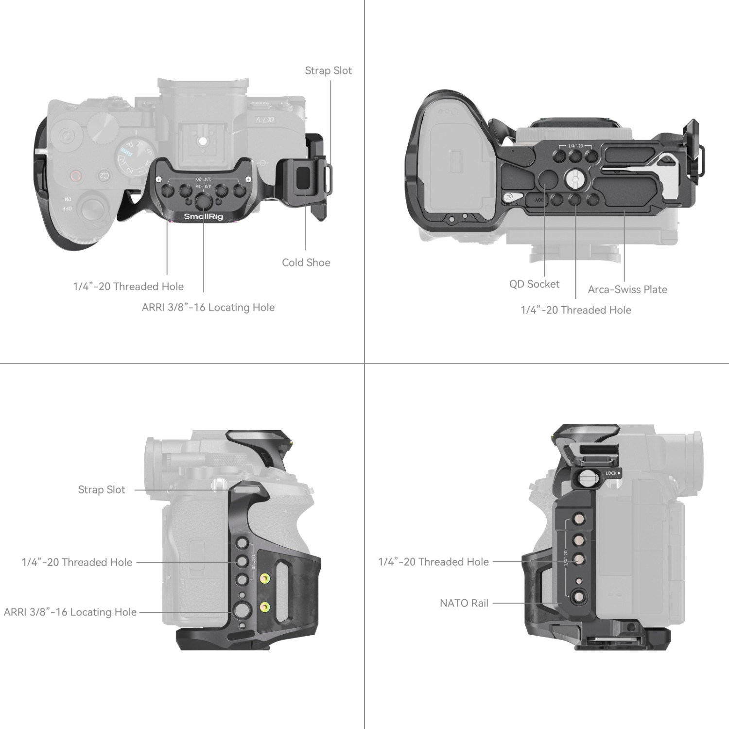 SmallRig "Rhinoceros" kletka za Sony Alpha 7 V / 7R V / 7 IV 6029 je zasnovana tako, da zagotavlja vsestranske možnosti razširitve in robustno zaščito za vašo kamero.