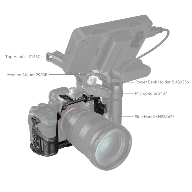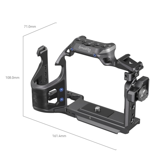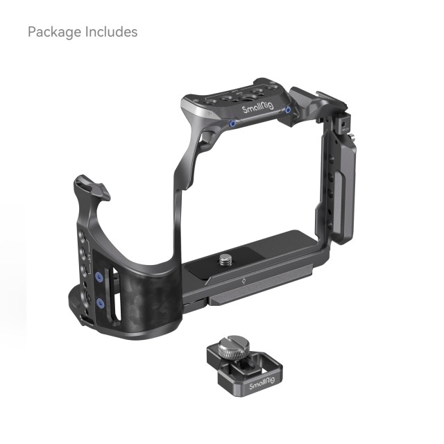 SmallRig "Rhinoceros" Cage Kit za Sony Alpha 7R V / Alpha 7 IV / Alpha 7S III 4308 je zasnovan za pritrditev dodatne opreme ter zaščito fotoaparata in vrat HDMI. Kletka trdno pritrdi fotoaparat s pomočjo lokacijskega zatiča, vijaka 1/4"-20 in vijaka M2,5 skupaj. Odlikuje jo čista poenostavljena zasnova, ki omogoča popoln dostop do zgornjih gumbov. Sponka za kabel HDMI je zategnjena z vijakom s ploščato glavo, ki ščiti vmesnike in zagotavlja stabilen prenos signala.