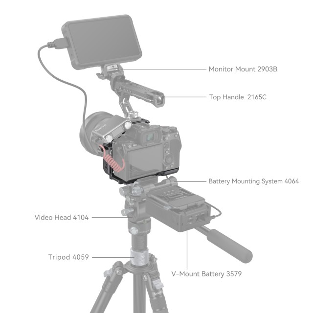 Za pritrditev druge dodatne opreme je na voljo več pritrdilnih točk, vključno z luknjami z navojem 1/4"-20 in lokacijskimi luknjami ARRI 3/8"-16 za zgornji ročaj 2165C, stranski ročaj 2093C, eno zgornjo lokacijsko luknjo ARRI 3/8"-16 za držalo za monitor 2903B, pritrdišči za hladne čevlje za mikrofon, video luči LED in spodnjo vtičnico QD za ramenski trak. Ploščica za hitro sproščanje Arca-Swiss na dnu podpira stabilizatorje DJI RS 2 / RSC 2 / RS 3 / RS 3 Pro, ploščico za hitro sproščanje stabilizatorja DJI RS 2 / RSC 2 (blazinica za povečanje višine) in ploščico za hitro sproščanje Arca-Type 3154. Ta element ima tudi reže za trakove na obeh straneh in na dnu, združljive z ročnim trakom 3848, ramenskim trakom PSC2428 itd. Poleg tega je priložen magnetni ključ za enostavno razstavljanje in sestavljanje.