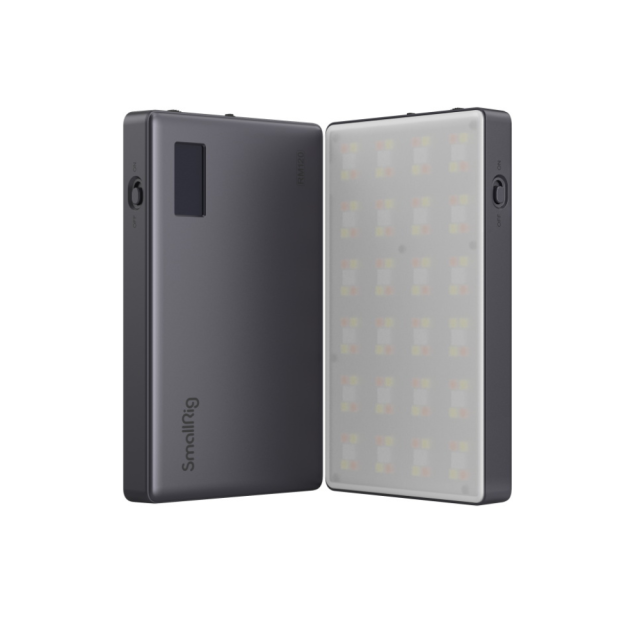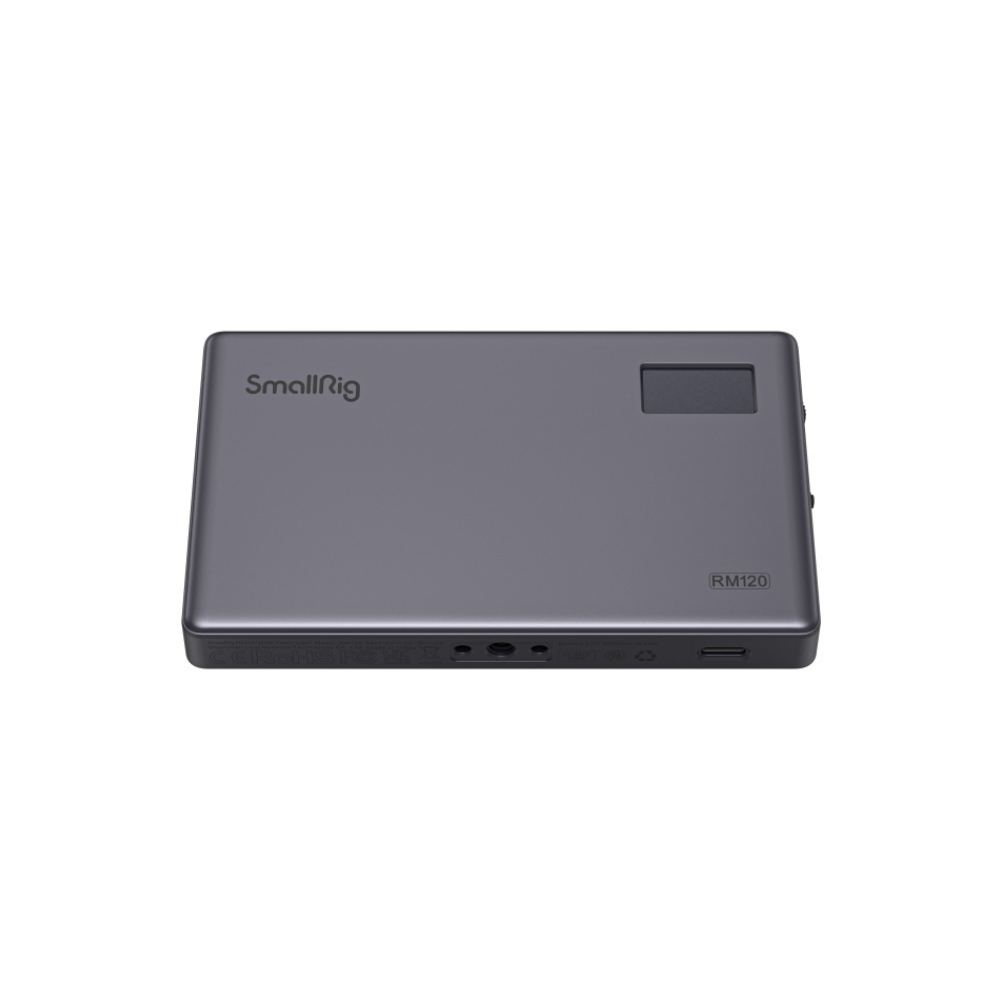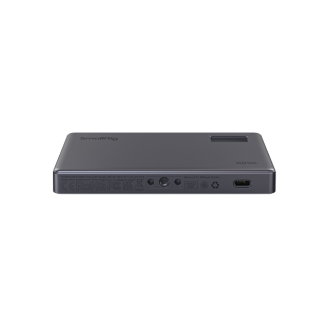Video lučka SmallRig RGB RM120 Long Battery Life ima minimalistično zasnovo in dolgo življenjsko dobo baterije, ki pri največji svetilnosti traja 180 minut, zato omogoča dolgotrajno snemanje različnih prizorov brez težav. Ponuja 0 % ~ 100 % svetlost, CRI 98+, TLCI 98+, barvno temperaturo 2500K ~ 8500K, 360° prilagoditev odtenka, 100° prilagoditev nasičenosti in 12 svetlobnih učinkov. Parametre, prikazane na vgrajenem zaslonu OLED, lahko preprosto in natančno prilagodite s številčnicami, gumbi in gumbi. Ta video lučka je opremljena z vgrajeno litijevo baterijo 5000 mAh, ki se polni s priloženim polnilnim kablom USB-C, eno luknjo z navojem 1/4"-20 na eni strani in na dnu za pritrditev fotoaparata in kletke ter difuzorjem za razpršitev mehke svetlobe.
