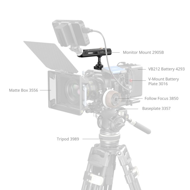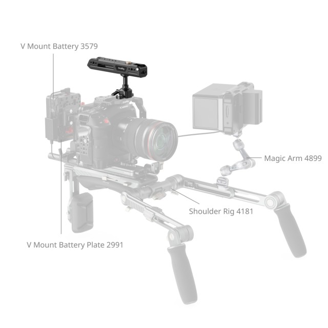 Podaljšani ročaj (162 mm / 6,3 palca) ima vgrajene silikonske blazinice, ki zagotavljajo udoben in varen oprijem, prilagojen uporabnikom z večjimi rokami. Številni vmesniki za namestitev povečujejo vsestranskost, vključno z luknjami za namestitev ARRI 3/8"-16 za pritrditev na monitor (ID 2093B), luknjami z navojem 1/4"-20 in luknjami za namestitev dodatkov, kot so daljinski upravljalniki (ID 3902) in magične roke (ID 3873), ter hladnimi nastavki za pritrditev na monitor (ID 2905B), mikrofone (ID 3487) in video luči (ID 3286B).