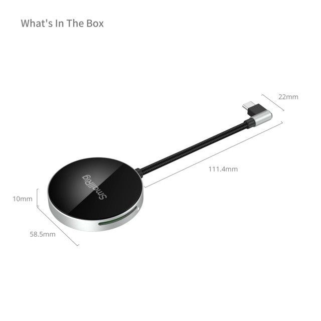 S hitrim prenosom prek vmesnika USB 3.0 s hitrostjo 104 MB/s lahko 1 GB podatkov prenesete v samo 10 sekundah, zato je kopiranje v velikem obsegu in prenos velikih datotek zelo enostaven. Bralnik se zlahka pritrdi na iPhone s pomočjo pritrdilnih elementov, kar omogoča upravljanje z eno roko kadar koli in kjer koli. Njegov pod kotom 90° nagnjen priključek zagotavlja varno namestitev in poenostavlja upravljanje kablov, kompaktna zasnova pa omogoča enostavno shranjevanje in prenašanje.