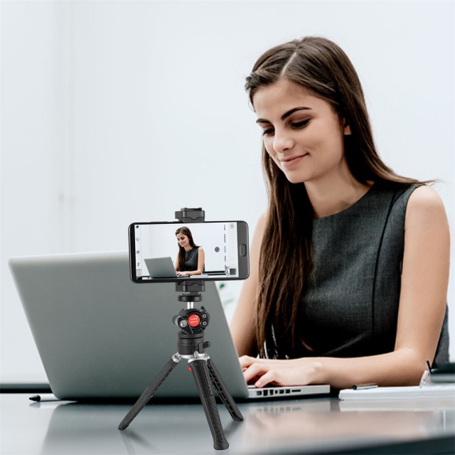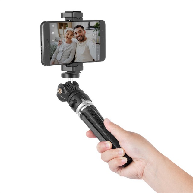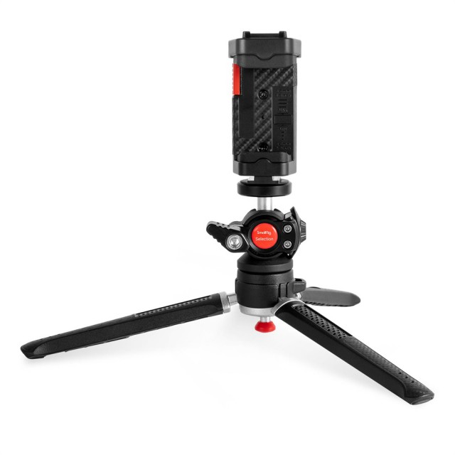 SmallRig Selection DT-02 3256 je lahek, kompakten mini stativ z varno nosilnostjo do 2 kg. Idealen za brezzrcalne fotoaparate, kompaktne fotoaparate, pametne telefone, akcijske kamere itd. S pritiskom na gumb na dnu enostavno preklapljajte med različnimi višinami stativa. Kroglasta glava omogoča fotografiranje z različnih kotov in ima standardno montažno odprtino 1/4"-20 za pritrditev roke ali druge dodatne opreme. Ima tudi nastavek za hitro snemanje za pametne telefone širine od 56 do 86 mm. Zaradi priloženega upravljanja prek povezave Bluetooth je upravljanje pametnega telefona še enostavnejše.