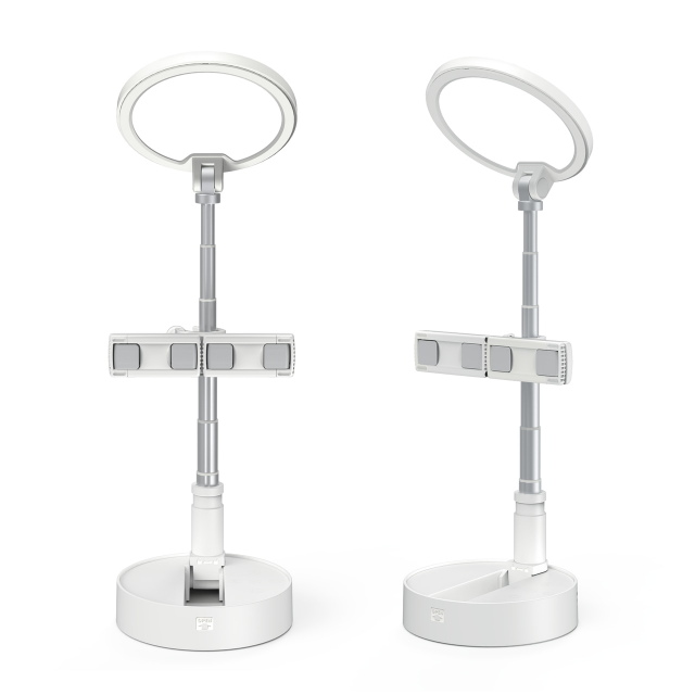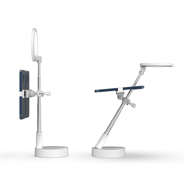 Površino svetilke tega izdelka je mogoče obrniti navzgor in navzdol, os je mogoče zavrteti za 360 stopinj, s teleskopsko aluminijasto cevjo 6 sester, višino in svetlost osvetlitve pa je mogoče poljubno prilagoditi; Uporablja se lahko za različne dodatne ambientalne osvetlitve; Gostiteljska plošča ima 5 gumbov na dotik za enostavno upravljanje - vaš spremljevalec za Vlog, delo in študijsko življenje.