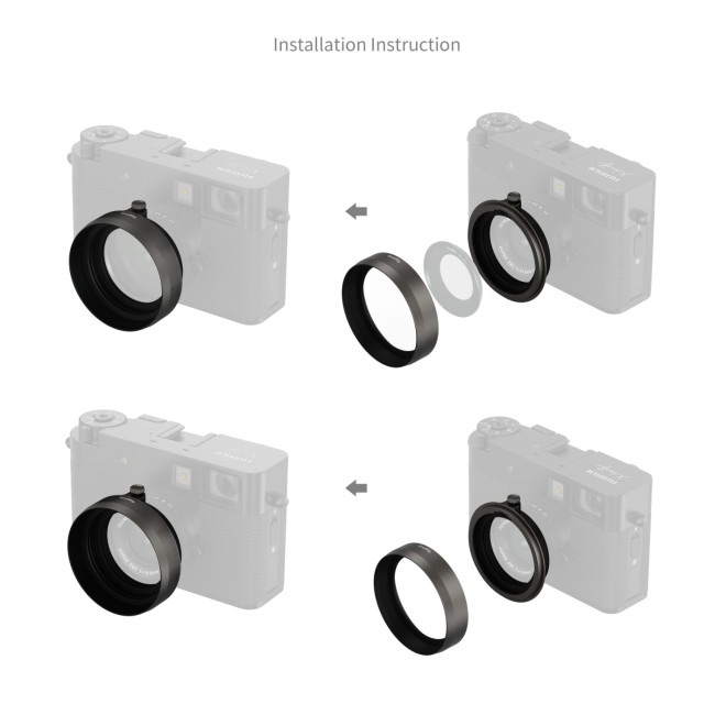 Srebrna in siva različica ima črno barvo na notranji strani, da se odpravijo svetlobni odsevi, ki povzročajo bleščanje. Ta zaslon je popolnoma združljiv z UV filtri SmallRig (ID 5214, 5393) in VND filtri (ND2-ND5) (ID 5225, 5391), ki so zasnovani za fotoaparat FUJIFILM X half.
