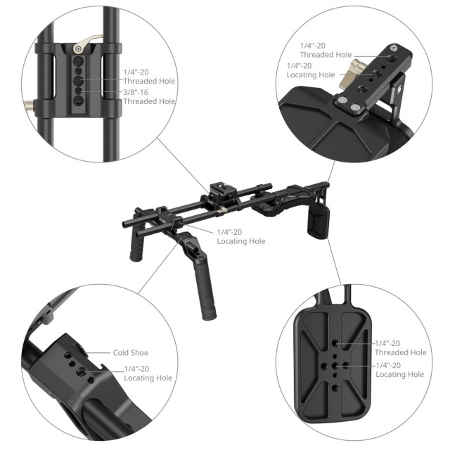 Komplet SmallRig Shoulder Rig(klasična različica) 4480Bje zasnovan tako, da zagotavlja udobno rešitev za snemanje z ramo. Z uporabo univerzalnega sistema z dvojno 15-milimetrsko palico se lahko prilagodi različnim specifikacijam kamer. Navpični kot ročaja je 15°, nastavljiv pa je z vrtenjem za 360°, kar je bolj v skladu z navadami pri držanju; priključek ročaja ima le eno vijakasto zaporo, kar je bolj priročno in hitrejše za uporabo.