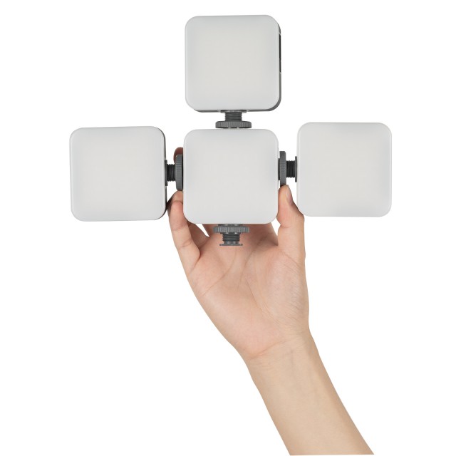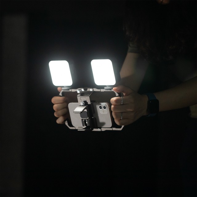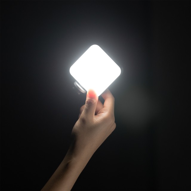 simorr P96 Video LED Light 3286 je lahka, prenosna in elegantna mini LED luč z 0-100-odstotnim nadzorom svetlosti, CRI95 in barvno temperaturo od 2700K do 6500K. Pritisnite gumb za vklop/izklop, da vklopite ali izklopite luč, ali pa ga pritisnite in dolgo držite za način osvetlitve (največja svetlost). Za nastavitev barvne temperature lahko pritisnete in zavrtite gumb z diskom, za nastavitev svetlosti pa to ponovite. Luč ima vgrajeno litij-ionsko baterijo s kapaciteto 2200 mAh, ki se polni prek priloženega polnilnega kabla USB tipa C in ima 105-minutni čas delovanja (največja svetlost). Namestite jo lahko neposredno na fotoaparat in kletko prek reže za hladno podstavek ali na nastavek za hladno podstavek na strani kletke fotoaparata.