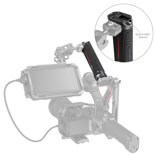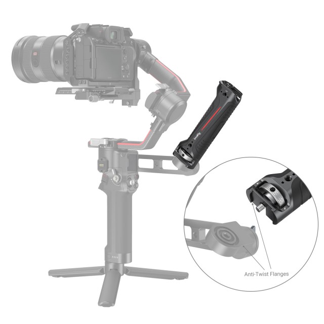 Držalo SmallRig Sling Handgrip za gimbal DJI RS 2 in RSC 2 3161 je posebej zasnovano za zmanjšanje utrujenosti rok pri snemanju z gimbalom pod nizkim kotom in zagotavlja točke za namestitev dodatne opreme. Držalo se pritrdi na ročaj ohišja DJI R z vijakom 1/4"-20 in ima dvignjen rob, ki preprečuje zvijanje. Na vrhu ročaja sta dve luknji z navojem 1/4"-20, ena luknja za pozicioniranje ARRI 3/8"-16 in en nastavek za pritrditev hladne čevlje za namestitev nosilca za monitor 2903 ali 2905