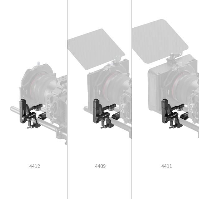 SmallRig Swing-Away 4414 je zasnovan za uporabnike, ki morajo hitro zamenjati objektive na svojem matičnem boksu. Opremljen je z 1/4" navojno luknjo in luknjami za pozicioniranje na dnu, da se prilagodi običajno uporabljenim mat boxom. Z zgornjo odprtino za enostavno namestitev navzgor ta zasnova zagotavlja nemoteno delovanje skupaj s 15-milimetrskimi dvojnimi palicami, kar omogoča neovirano uporabo mehanizma Swing-Away brez ogrožanja stabilnosti zaradi varnega zaklepanja drsnikov dvojnih palic. Ročica z bočnim odpiranjem omogoča vodoravno in navpično nastavitev, kar omogoča namestitev fotoaparatov različnih višin in različnih velikosti objektivov. S preprostim pritiskom se nemoteno odpira pod kotom od 90 do 180 stopinj, kar zagotavlja dovolj prostora za menjavo objektivov. Kompaktna in lahka zasnova vrtljivega nastavka zagotavlja neverjetno lahkotno uporabniško izkušnjo.